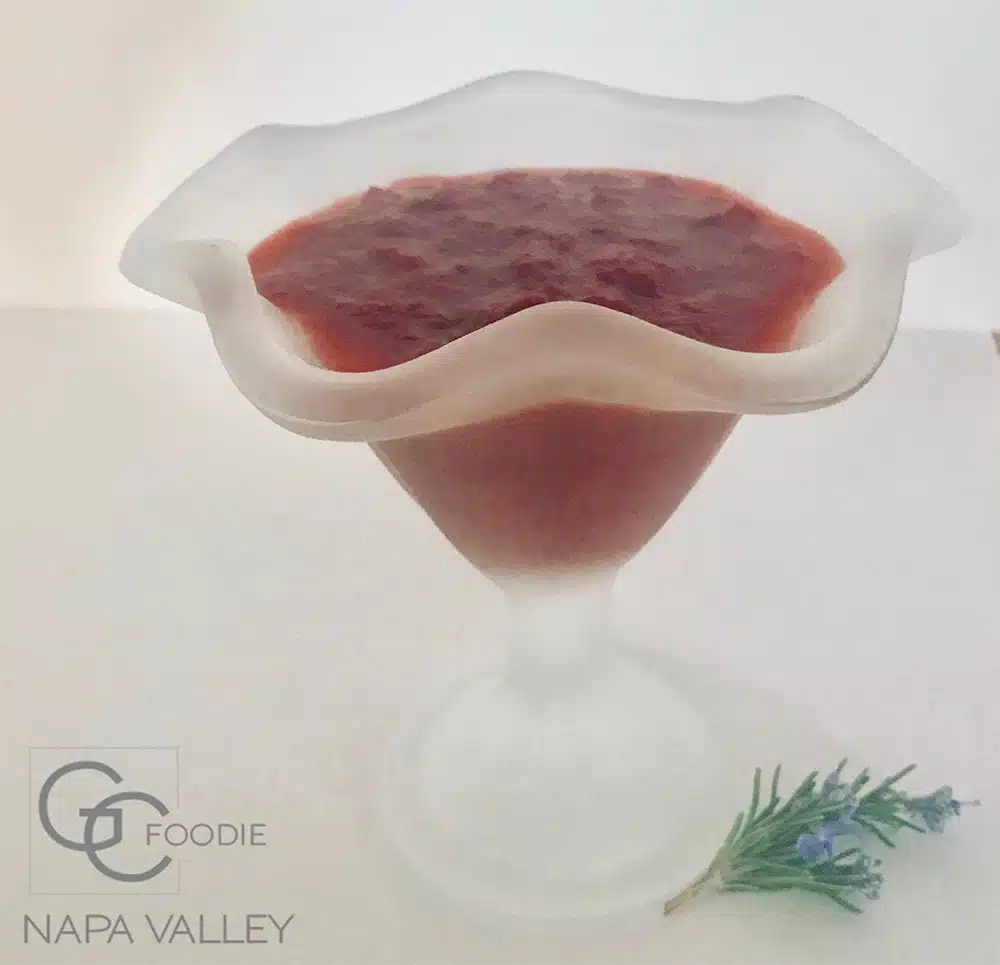 - Combine all compote ingredients except the Tarragon Pink Peppercorns and Lemon Finishing Sea Salt in a medium saucepan over medium heat and bring to a simmer, stirring occasionally. Cover and gently simmer 5 minutes. Remove lid and continue simmering for an additional 5 minutes. Remove from the heat and pour into a mixing bowl. Add the Tarragon Pink Peppercorns and Lemon Finishing Sea Salt.