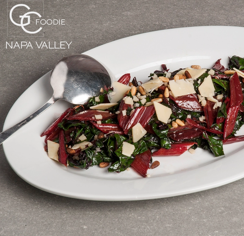 Wilted Pink Chard and Beet Greens Layered with Fontina and Gruyere Cheeses